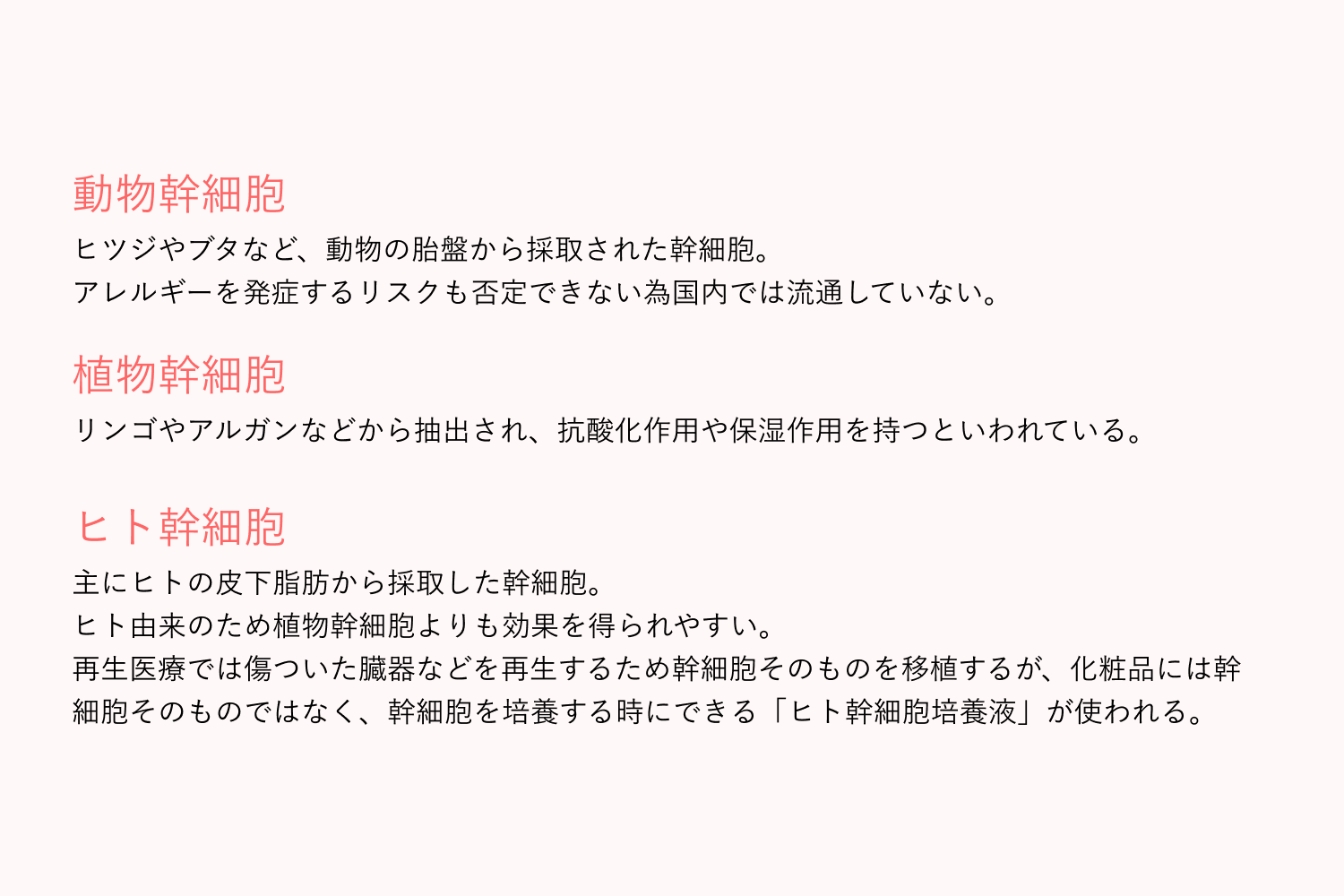 幹細胞コスメには、幹細胞そのものが入っている訳ではなく、「幹細胞培養液」が入っています。