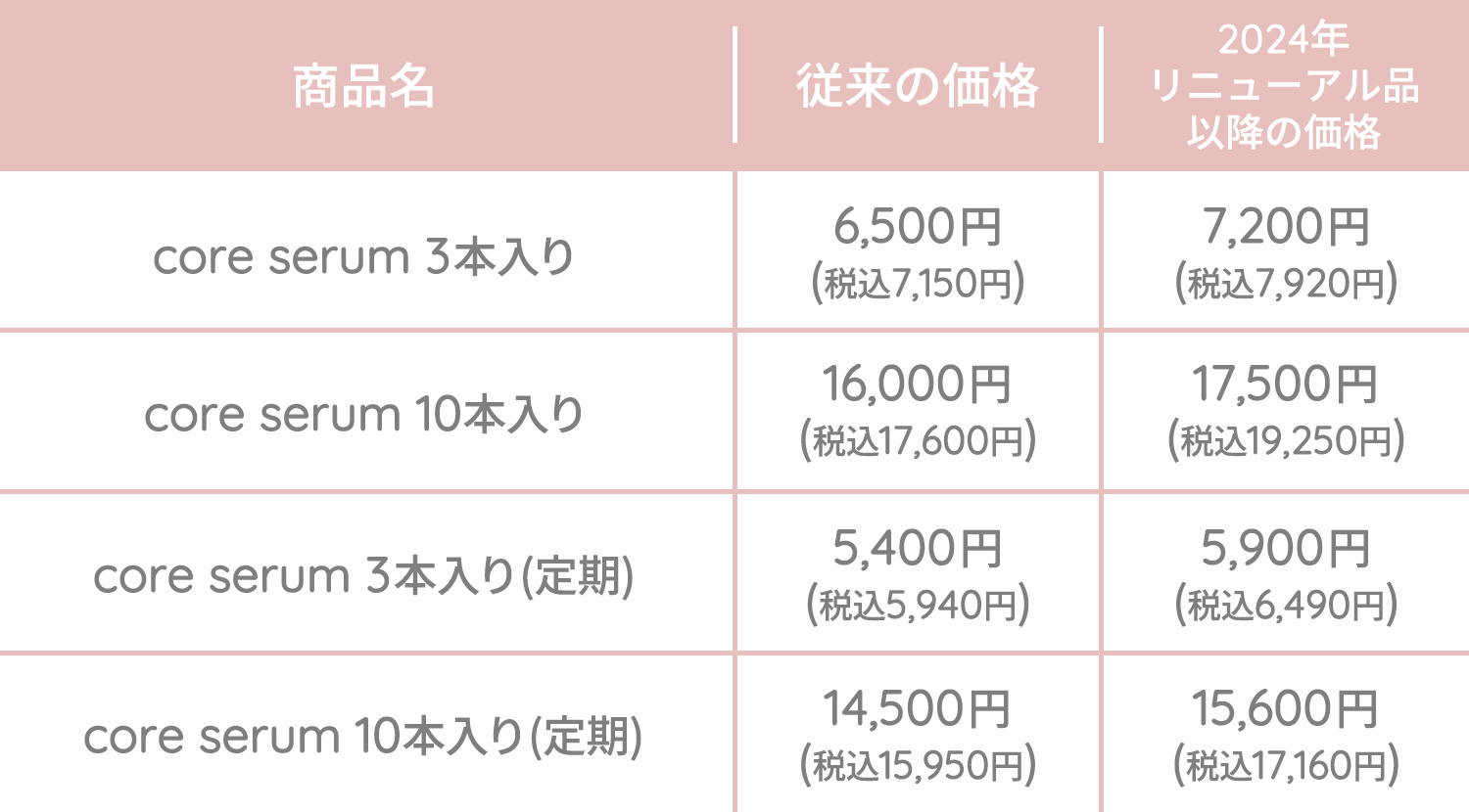 リニューアルに伴い成分の変更等で、下記の通り値上げをさせていただきます。