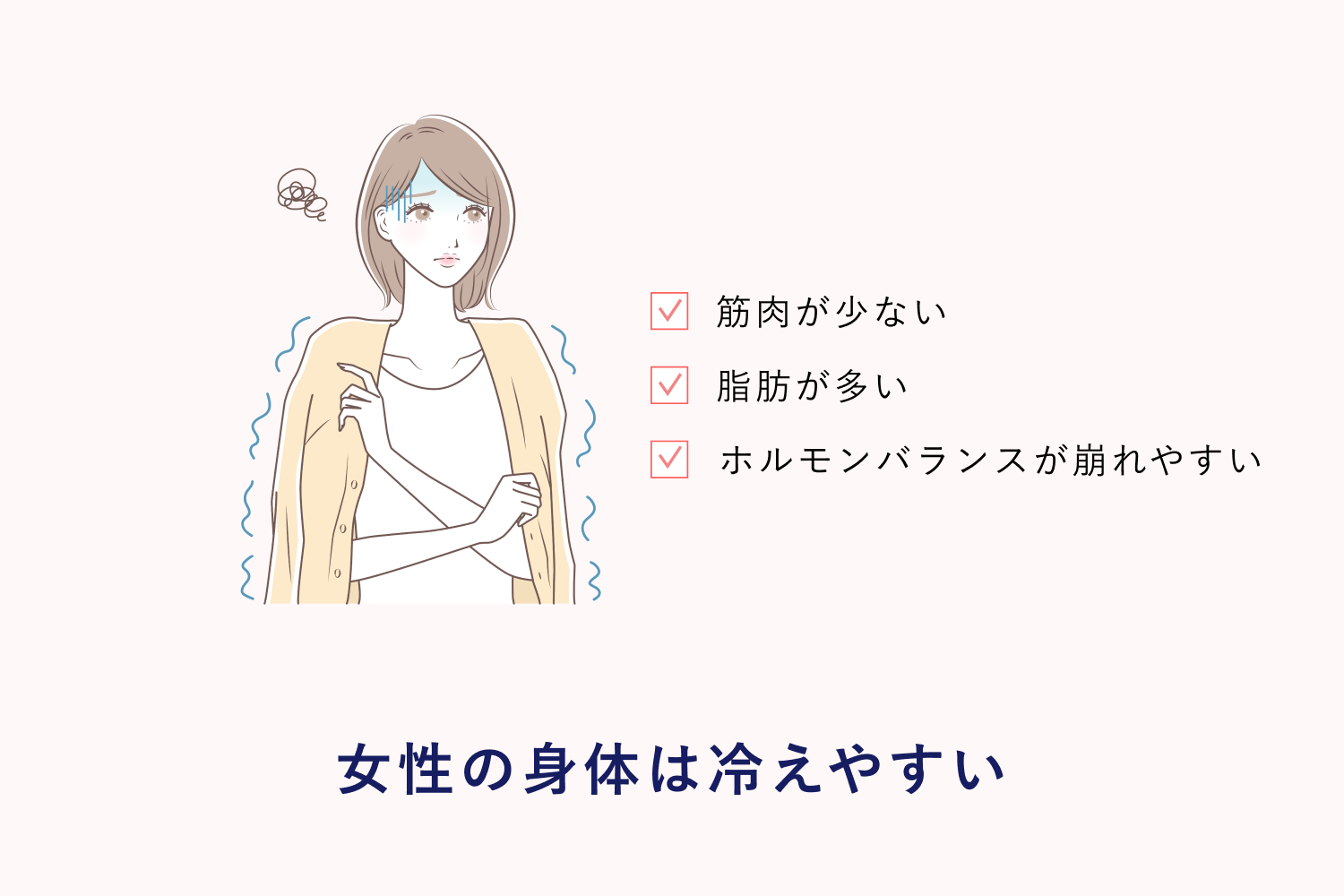 逆に身体が冷えることで、女性ホルモン・自律神経のバランスを乱してしまうこともあります。